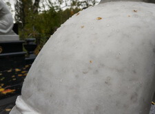 После того, как статуя была приедена в порядок, мы подправили выгравированный портрет покойного (на начальном этапе видны полосы и другие излишние элементы, образовавшиеся на гранитной поверхности).