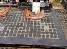 Приступаем к работе с цветниками. Один уже был в наличии, поэтому делаем второй, идентичный. По проекту цветники должны смотреться одинаково даже несмотря на то, что памятники будут разные. В это же время укладываем гранитную брусчатку уже на территорию места захоронения.