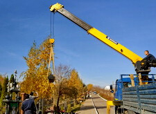 Начинается процесс монтажа. Доставляем памятники, крепим их, приклеиваем и насаживаем на штыри все конструктивные элементы надгробий.